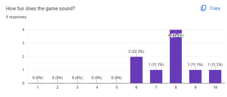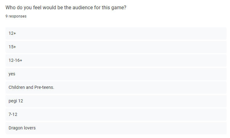 This question was similar to question 2, but more focussed on the mechanics of the game that I'd described.Just under half of the responses were either 8/10 or 9/10, with the remainder being 7/10, which I am happy with for now, as I will likely gather more feedback on my game mechanics as the creation of my game progresses.
